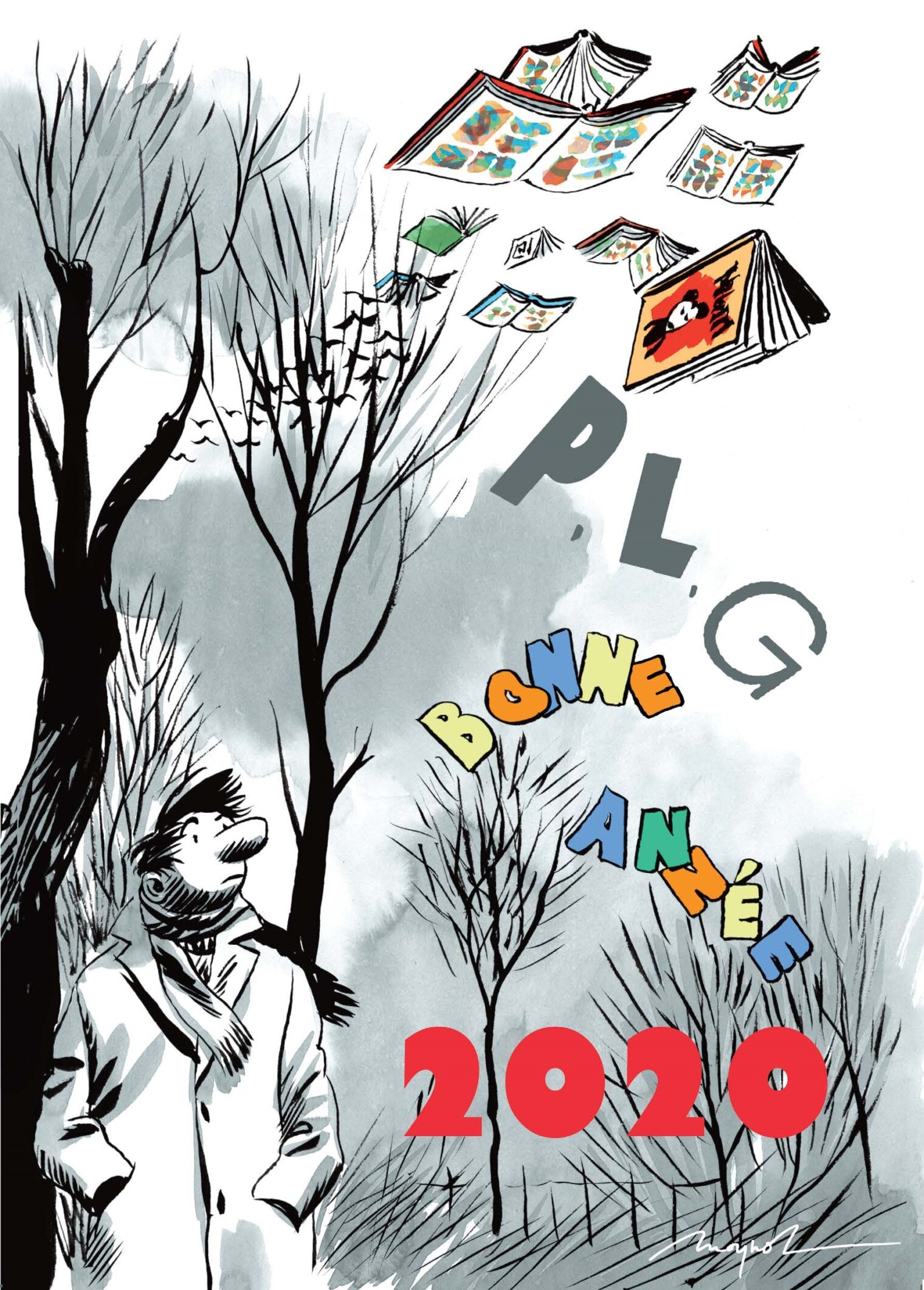 En 1984, PLG existe depuis 6 ans, une opportunité permet d’imprimer cette carte de voeux , le coup de départ est donné, dorénavant chaque année PLG fera imprimer une carte de voeux qu’il enverra à quelques privilégiés. Selon les occasions la carte sera luxueuse ou simple, le principe adopté étant de faire appel à un jeune auteur différent pour illustrer chaque carte.